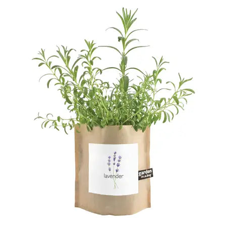 Grow fresh Lavender {Lavandula angustifolia} in a windowsill or any sunny spot indoors, year-round, directly in the leak proof bag. The leaves are intensely aromatic right from the start and said to have a relaxing effect. The flowers are edible and can be used raw in salads, added to stews, used to season cookies, ice cream, candied or even brewed in tea. Lavender pairs especially well with dark chocolate.