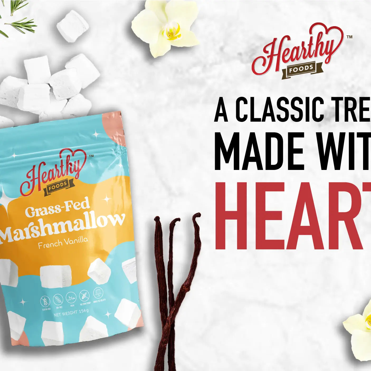 Our Grass-Fed French Vanilla Marshmallows are a one-of-a-kind, delicious, and decadent treat. Handmade in our facility with grass-fed gelatin and rich French vanilla powder, we take pride in our small batches and never compromise on quality. Each of our marshmallows is perfectly pillowy, creamy, and rich in flavor. It’s hard to believe these mouthwatering sweets are low in sodium and have no saturated fats. Try these yummy marshmallows in your next hot chocolate, s’more, or marshmallow blondie.