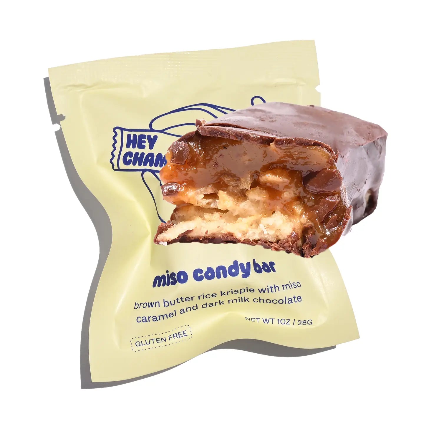 MISO brown butter rice krispie with miso caramel and dark milk chocolate the perfect