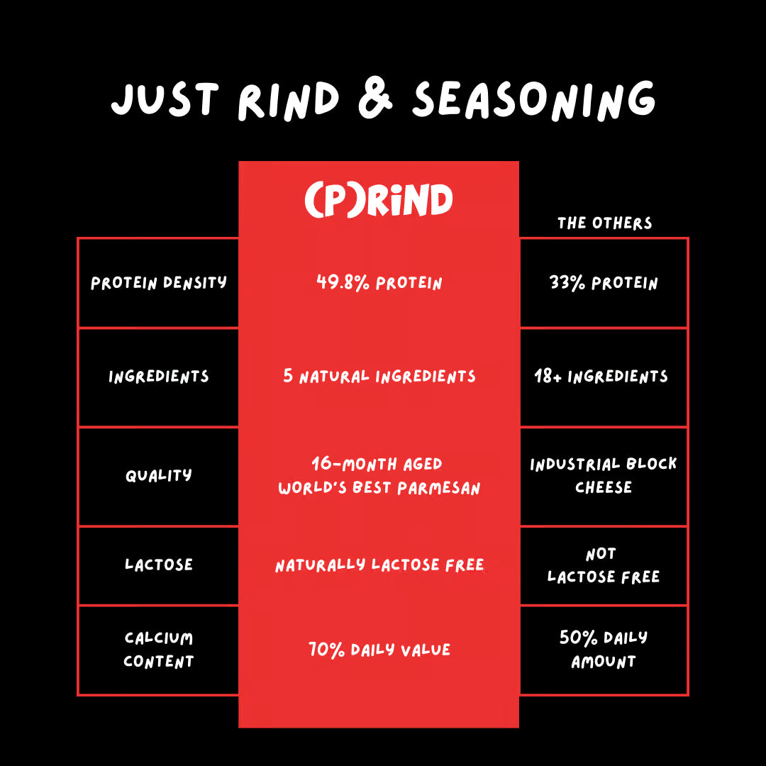 Irresistibly crunchy, protein-packed, and unapologetically bold—our Plain Parm Pops are crafted from the rinds of the world’s best Parmesan. Flash-baked to preserve flavor and maximize crunch, these naturally lactose-free, gluten-free, nut-free bites offer 30g of protein per serving, low carbs, and zero sugar.